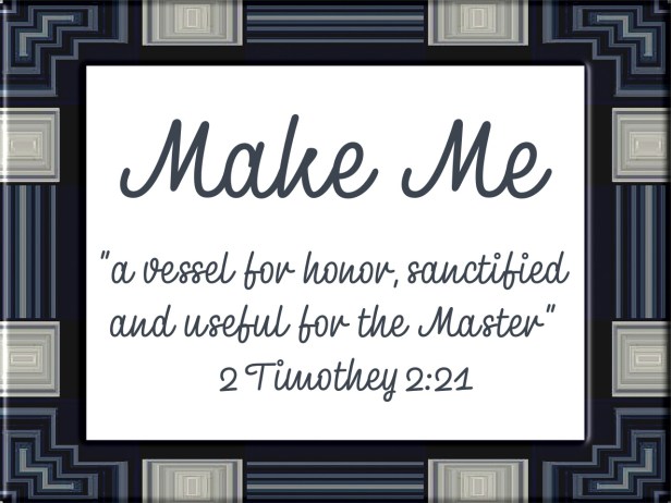 Praise God! He has made us as He desired, and He is transforming us into the perfect image of His Son. If we desire to be a Vessel of Honor, we can pray, “God, Make Me.”