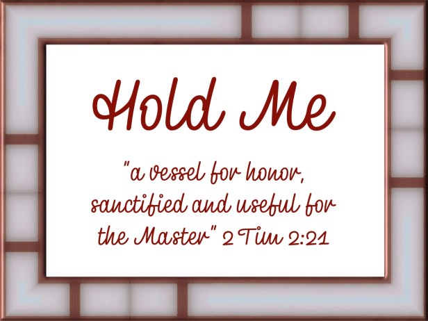 Praise God! He holds us today, every day, and into eternity. If we desire to be a Vessel of Honor, we can pray, “God, Hold Me.”